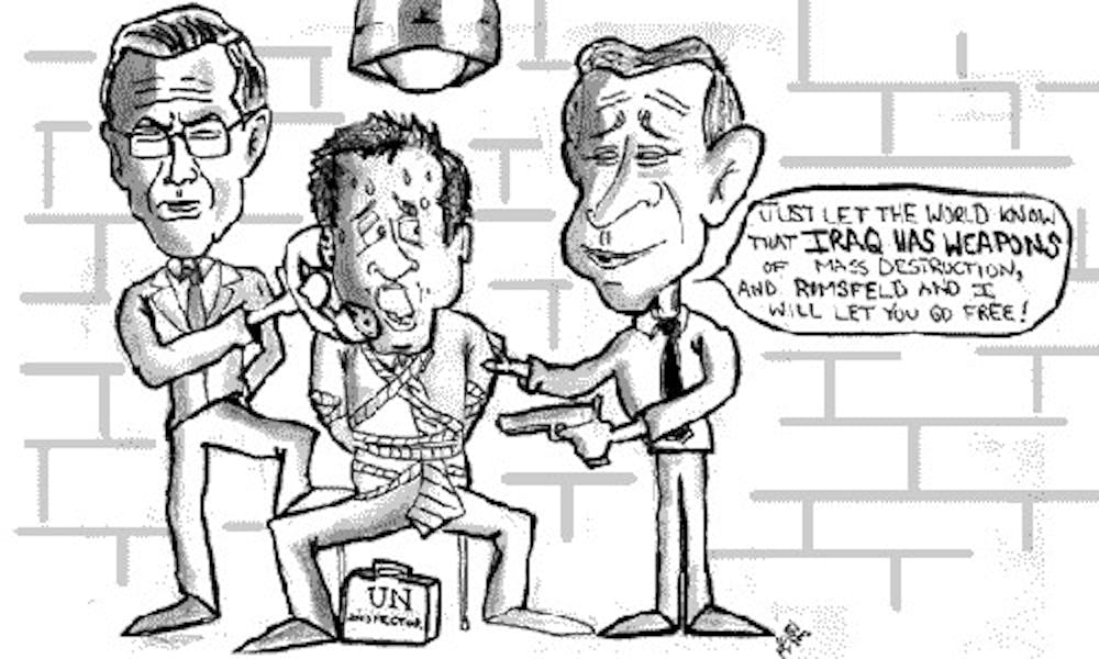 As the United States braces itself for a possible attack on Iraq, millions of people are beginning to wonder if war is the right answer and if President George W. Bush's policy of "pre-emptive war" is one that has the world's best interest in mind. Pressure on Saddam Hussein is required, but waging war is not. An attack will disregard America's allies, and, perhaps more importantly, logic.