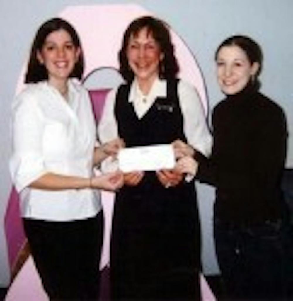 Members of the Sexuality Education Center donated $256 to Whyme House, a cancer foundation, on Feb. 26. From Left: Melissa Kleinman, counseling supervisor and junior psychology major; Carolyn Zimmerman, executive director and founder of Whyme House; and Amy Vincent, counseling supervisor and junior psychology major. The Sexuality Education Center raised the money at a breast cancer awareness luncheon in October.
