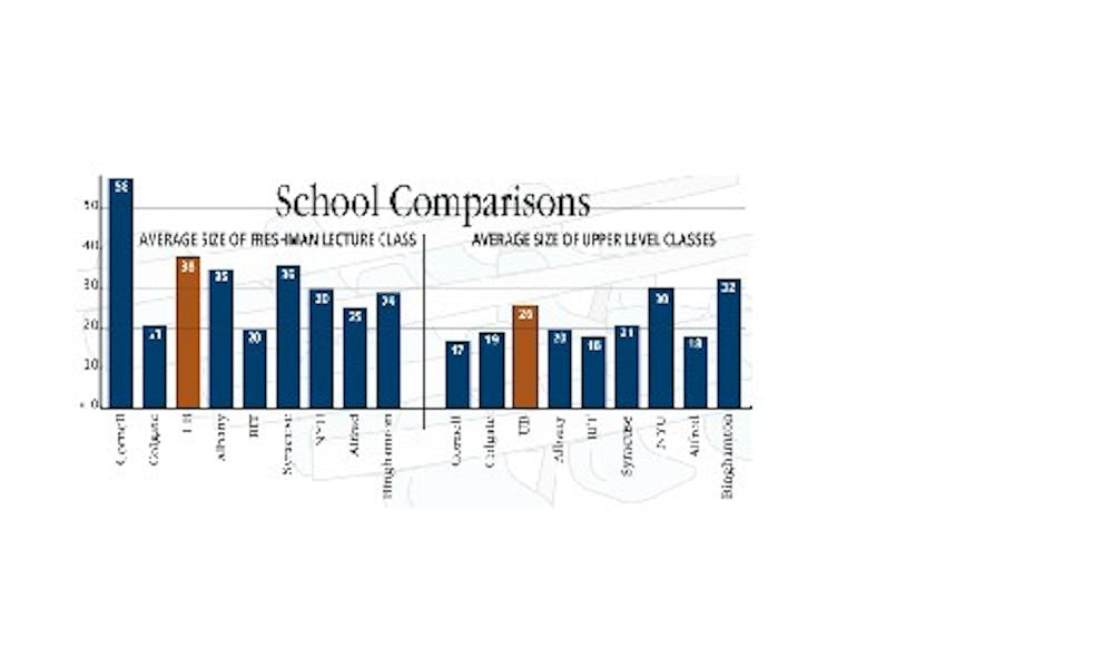 In contrast, UB, with its freshmen class ballooning on a yearly basis, will continue to battle large classes indefinitely, and students can hope the professors are prepared.