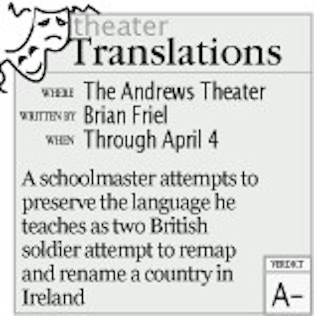 "Translations" continues through April 4 at the Andrews Theatre, 625 Main St. Immediately after each Thursday night performance, there will be a chance to talk with the cast and/or director.