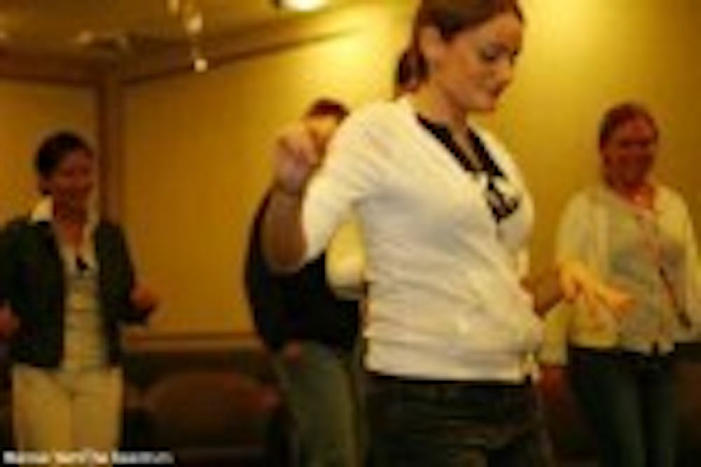 After the meal came the instructional part of the night. As the soundtrack to the feature film "Dirty Dancing: Havana Nights" played, Gorodetskaya taught six female participants and one male basic salsa moves inherent in any Cuban dance. She even gave the first five people to arrive free copies of the CD.