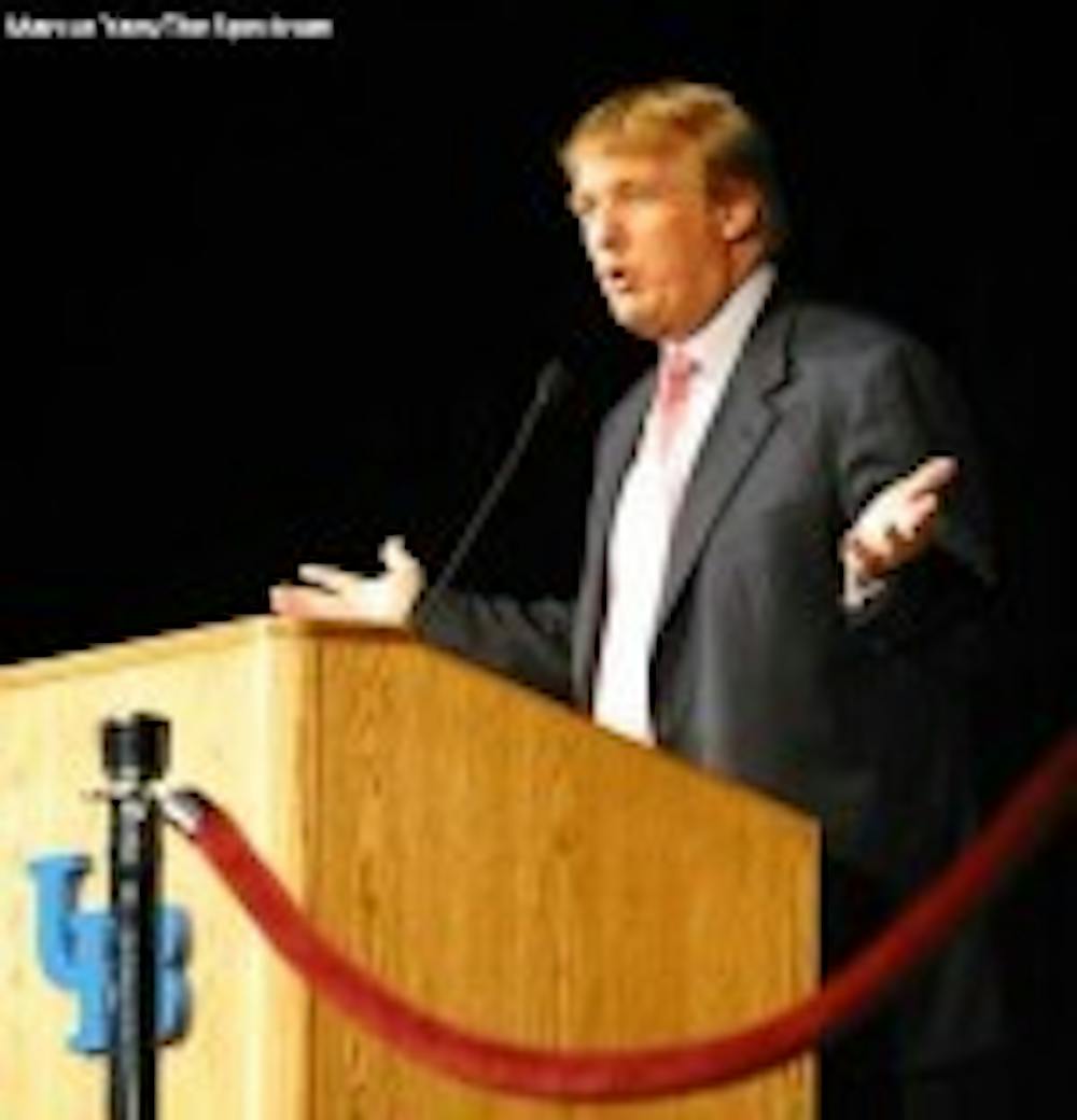 Real-estate billionaire Donald Trump kicked off the 18th annual Distinguished Speakers Series Thursday night, encouraging students to "think big" and "get even."