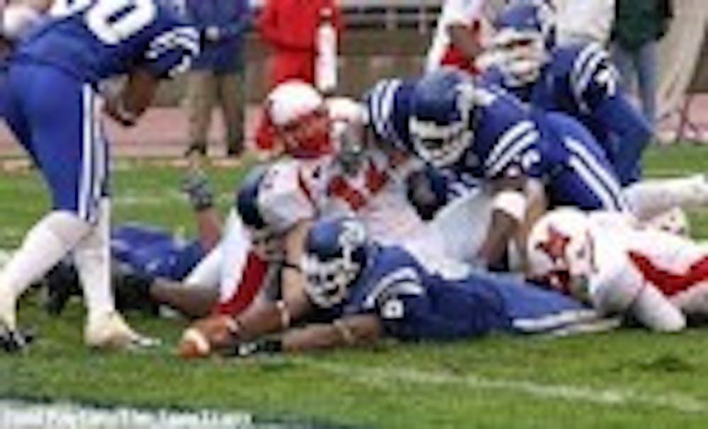 In the second quarter it was another defensive back, this time James Evans, who broke into the sack column. With Miami threatening at the Buffalo 20, Evans came hard off the left side of the Redhawks' line and laid a vicious hit on Betts, forcing another fumble that rolled all the way back to the 42 before being covered by a Miami offensive lineman.