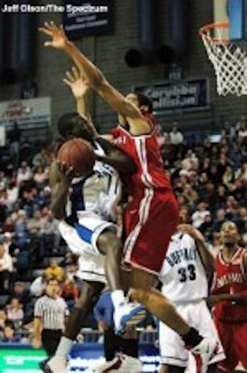 The Bulls appeared as though they were playing right to Niagara's strengths, as they continually sent Mendez to the line and took a large number of forced shots from the outside. Buffalo seemed unable to penetrate Niagara's zone defense, but in the end Mark Bortz was able to take control of the Bulls' offense and put in 32 points of his own.