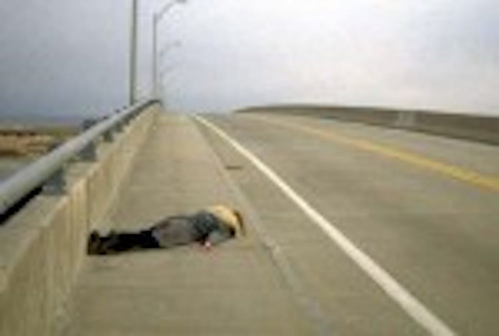 Tsch?_pe's photographic images from the series "100 Little Deaths" are pictures she took of herself laying, as if dead, in different locations. She's an artist with a dual identity drawn from her German and Brazilian heritage.