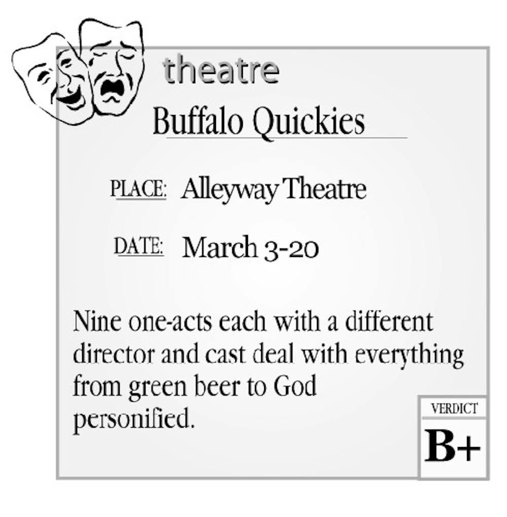 They are all characters in a series of plays entitled "Buffalo Quickies," now playing at Alleyway Theatre in downtown Buffalo. The 14th annual event features nine one-act plays and runs through March 20.