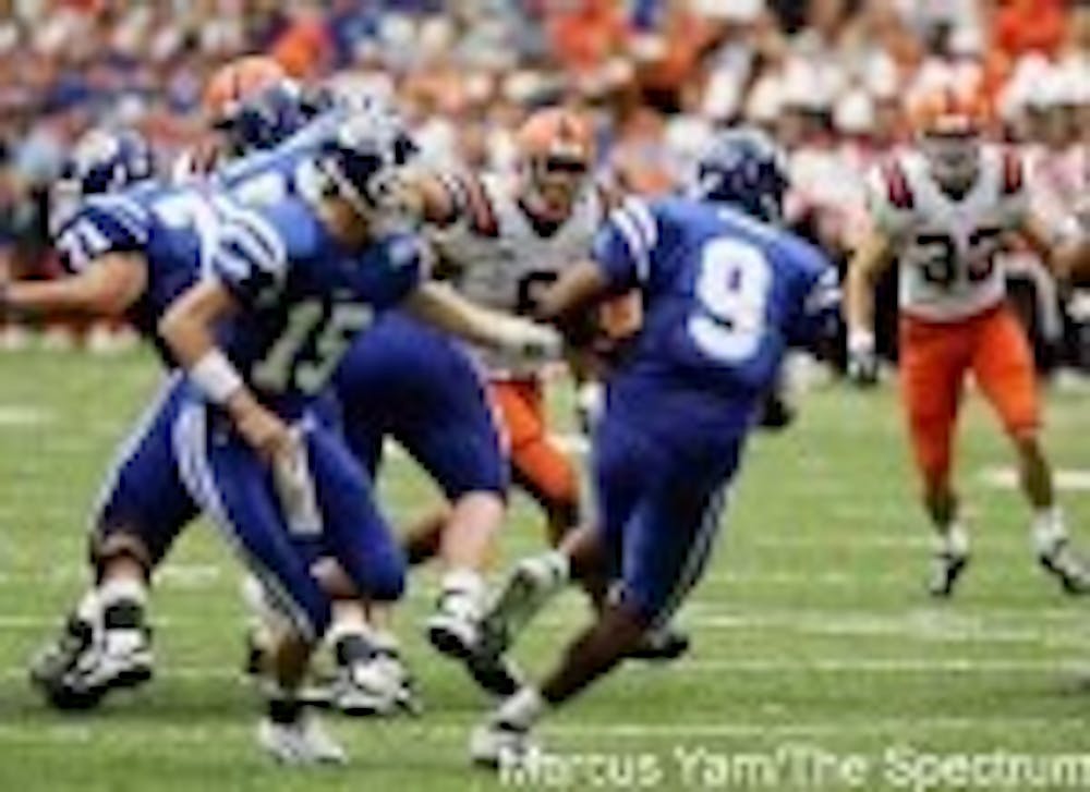 The Bulls (0-2) lined up first-and-ten from their own 20-yard line as 34,442 fans shook the Carrier Dome to its core. Center Jamey Richard snapped the ball to junior quarterback Stewart Sampsel, who handed it off to junior tailback Steven King for an up-the-middle run for a gain of one.