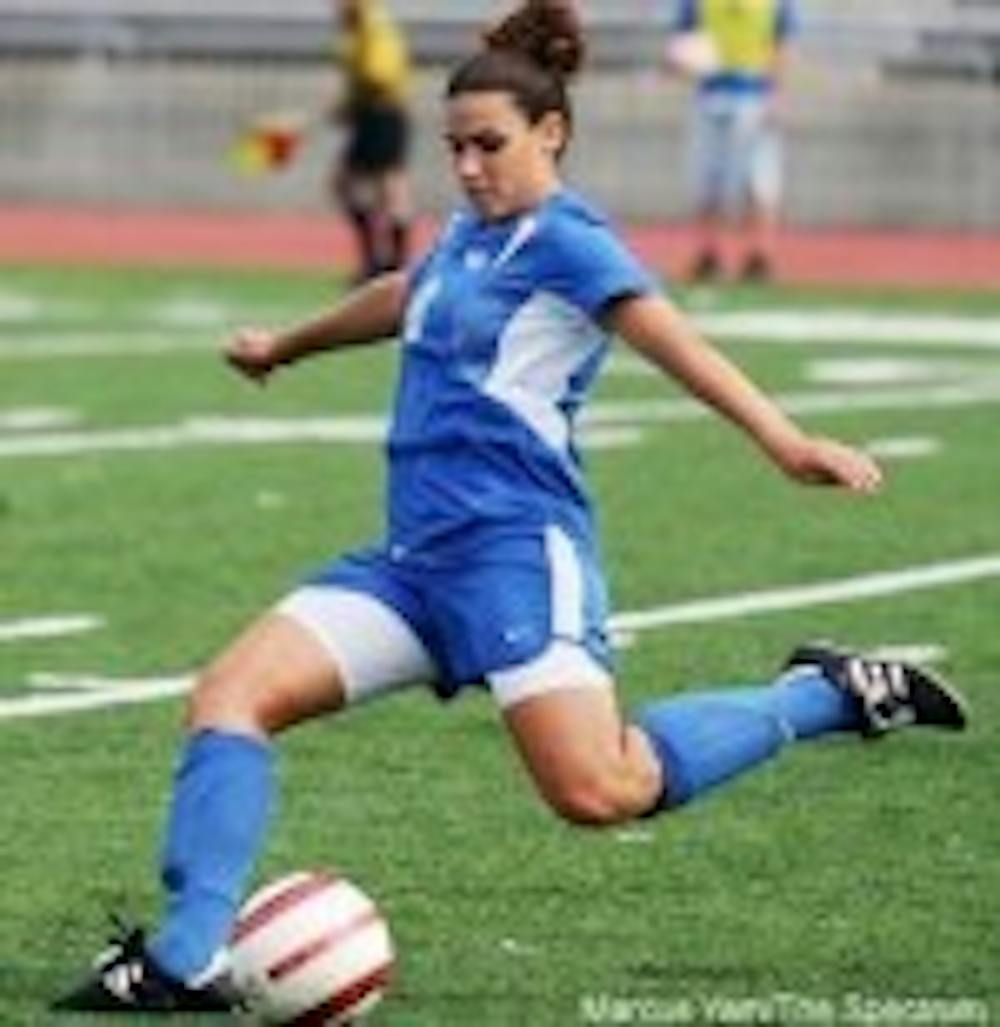 Sophomore Katie Fage took two of UB's six shots. Junior Jessica Roesch managed the team's only shot on goal. Senior Anna-Lesa Calvert made five saves in the game for the Bulls.