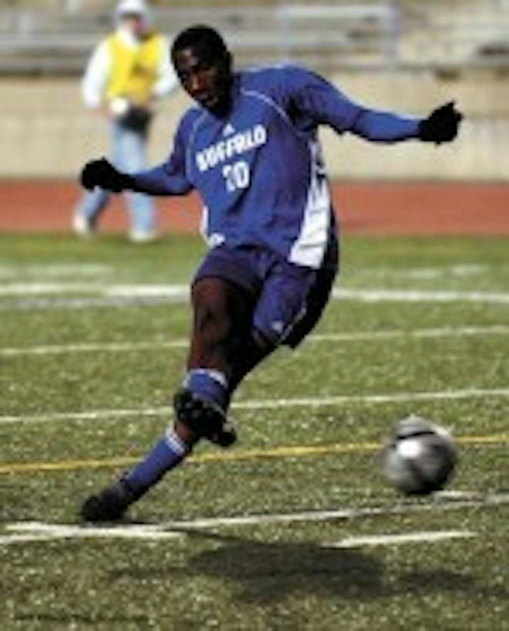 Recovered from a mid-season injury of his own, sophomore Shyle Braithwaite had a close call as he took a shot on goal that hit the outside left-corner of the net, fooling the audience and sending through the bleachers a spoken-to-soon "Woohaa!"