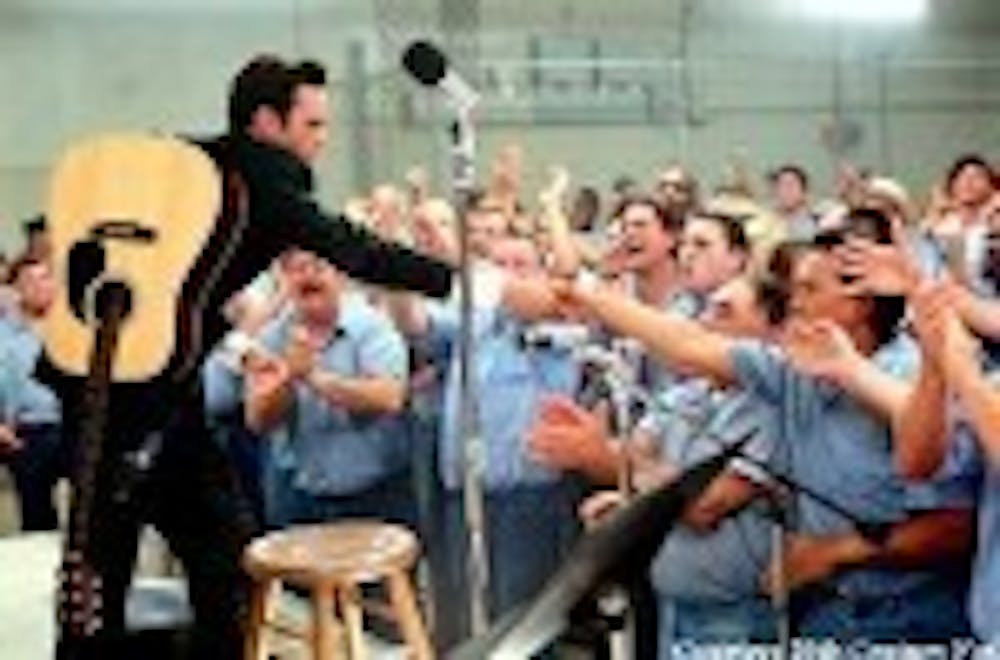 It is reported that in preparation for his role as Johnny Cash, Joaquin Phoenix-whom Cash chose to play him when he was alive, based in part on his performance in "Gladiator"-forced himself to develop a drinking problem. Whether or not he had a full-blown addiction, Phoenix does appear weathered. He's less picturesque, less in-shape and has inherited the bags under Cash's eyes.