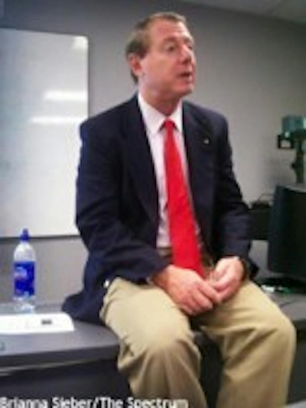 Professor Lewis Mandell from the School of Management posed questions to the UB community Monday in Jacobs Hall, offering stats relating to financial literacy and gender in exchange for new inquiries. The speech was a part of the Gender Week agenda.