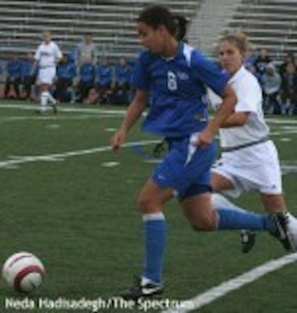 Sophomores Andrea Vescio and Jenessa Banwell started the excitement, Banwell with the assist and Vescio with the shot to the back of the net. Vescio's goal was her sixth goal of the season, which leads the team in goals.
