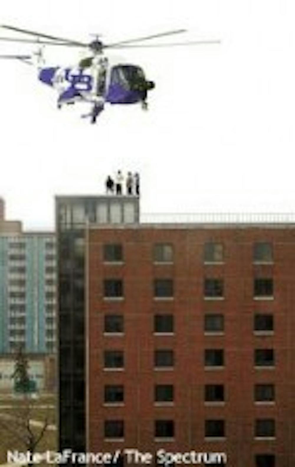 Four students who were not able to escape the flood were found trapped on the roof of Goodyear Hall somewhere around 7 a.m. The University PoPo Helicopter flew in within the hour to bring them to safety.