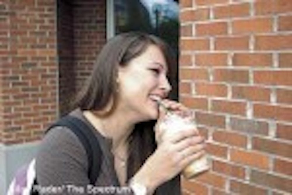 Students aren't always conscious of what they're consuming in their Starbucks delights - many drinks that the Starbucks on campus serves up can be the equivalent caloric intake of one whole meal for the day. According to the Nutrition Action Web site, a Starbucks Venti (20 ounce) Caffe Mocha with whipped cream contains 490 calories and 16 grams of fat. So before you go sucking down your third cup of joe for the day, beware of what you're taking in.