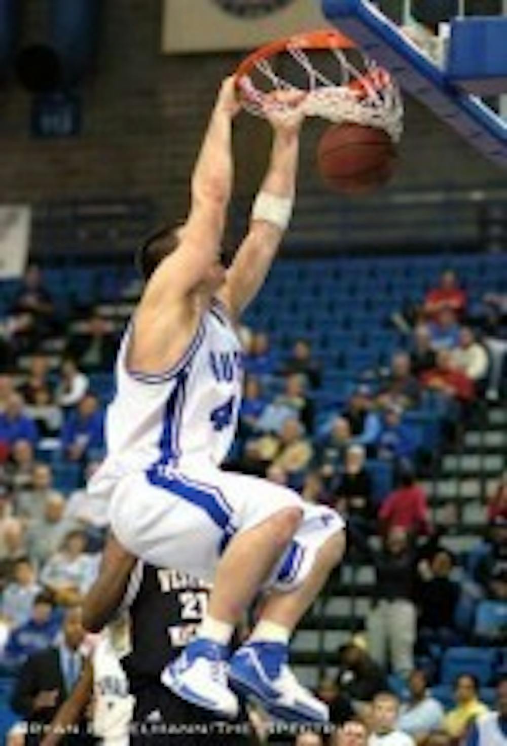 Buffalo trailed by six points with 13:20 to go in the first, but after a lay-up by sophomore forward Max Boudreau and two consecutive three pointers by sophomore guard Rodney Pierce, Buffalo took a two-point lead.