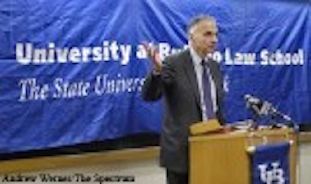 Nader spent the first half of his lecture speaking out against large corporations and the corrupting factor they can have on young lawyers and politicians.