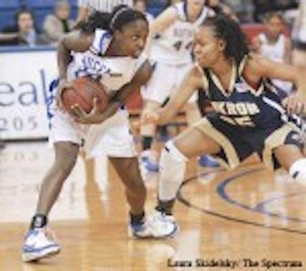 But it wasn't just Buffalo's defense that led the team to victory. The offense, led by sophomore forward Kourtney Brown, outscored the Zips 34-18 in the paint.