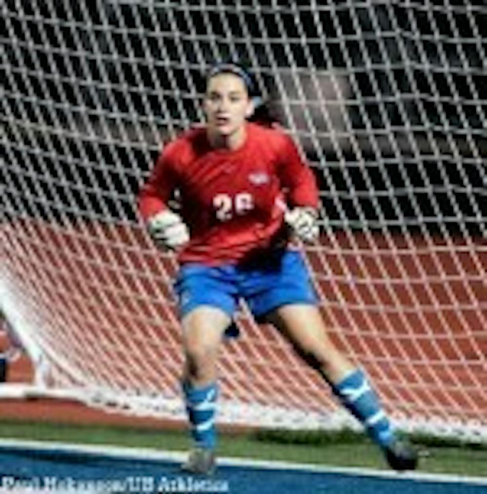 She may be an intimidating force between the pipes, but don't let her game face fool you. Senior goalkeeper Amy Coron of the women's soccer team got her start by kicking around a big, yellow, fuzzy ball in an indoor YMCA league when she was just 3 years old.