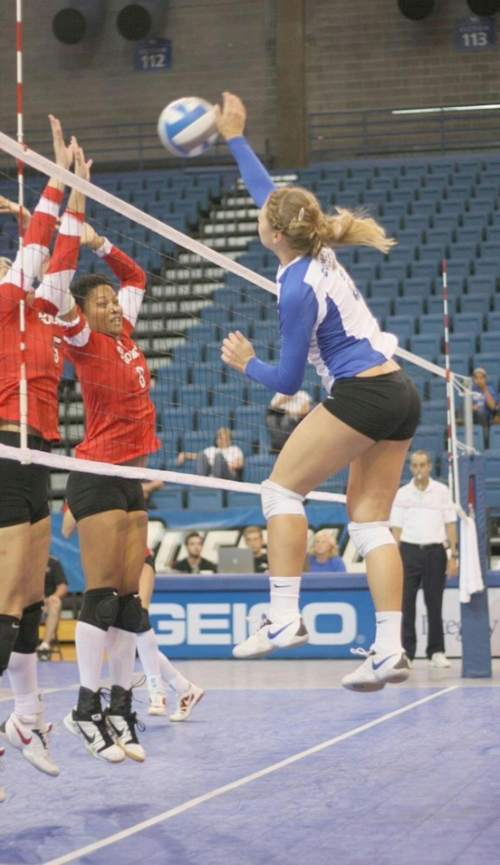 Freshman hitter Liz Scott carried the team throughout the match against Colgate. Her match-high 20 kills, along with 12 digs, impressed Kress.