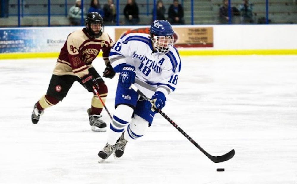 Despite the men's ice hockey team's dominant play in the first two and a half periods in Saturday's game against Rochester College, the game was tied at 1-1 late in the third period. It appeared Buffalo's chances at an appearance in the American Collegiate Hockey Association (ACHA) national tournament could be in jeopardy.