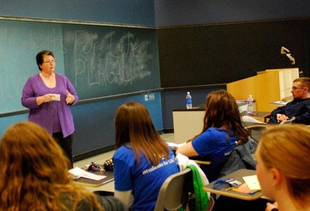 Halfway through a Cardio Kickboxing and Toning session in Alumni 75, everyone looks tired - everyone but one woman. With a voice that overwhelms the blaring music in the room, she continues her reps and sings along with the music, seemingly unfazed by the high-intensity workout. This is Ute Inselmann. Inselmann, a Ph.D.