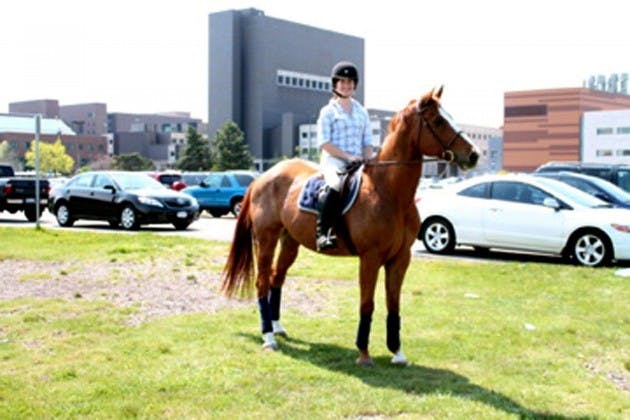 Mr. Movsesian blames his daughter's love of horses on his wife. Ever since she was a little girl, Cheryl Movsesian remembers her mother pointing to the "pretty horses" during the Movsesian's family road trips. Movsesian, a junior biochemistry major, is currently team captain and president of UB's equestrian club.