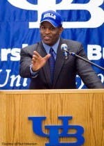 By JENNIFER GILLAN | Jan. 20, 2006Turner Gill may have felt a bit like a fish out of water when he arrived in Buffalo, unfamiliar with the city and far from a winning football program, but it seems to be something he has since taken in stride.Amidst the blue couches, blue chairs and blue carpets of his UB Stadium office, the first-time head coach has already started to make himself comfortable.