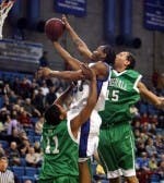 By NICHOLAS MENDOLA | Jan. 28, 2005Just two nights after struggling to hold on to a big lead against Northern Illinois, the UB men's basketball team had to come from behind to defeat the Marshall Thundering Herd.The Bulls (12-5, 5-4 MAC) used a career-high 25 points from center Yassin Idbihi and a stingy second-half defense that held Marshall (3-14, 0-8 MAC) without a point for over nine minutes to pull away with a 78-65 win in front of 3,114 at Alumni Arena.Trailing by four at the half, and by as many as seven in the second session, UB head coach Reggie Witherspoon did something very unusual, switching to a zone defense.