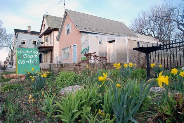 By ASHLEY HIRT | Apr. 6, 2010The houses are dilapidated. Boarded up. Vacant lots abound. Shards of glass are crunched into smaller pieces with each passing Escalade. Rap music rattles windowpanes. This is Massachusetts Avenue in Buffalo, a neighborhood filled with crime, drugs and debris. This urban environment is an unlikely place for agriculture. Yet eight lots of land were reclaimed for the youth program, Growing Green, for that very purpose. In the winter the garden is barren and desolate, with only the brightly painted Growing Green mural of flowers and vines brightening the dreary atmosphere. When spring arrives, the garden creates new life and new beginnings in both the plants and the teenagers of the youth program. The Growing Green Anthem, written by Romero Gossom, supports the new beginnings in the inner city youth through this particular verse: "We are trying to be some better teens with new routines, you know what I mean, it's all about Growing Green!" Ashley McGuffin is in her fourth year of the program, and looking back, she believes she has changed as a person. When she first entered the program, she didn't care about her schoolwork and rarely spent time studying. Each summer, inner city youth like McGuffin are selected to work on the urban farm. However, this year the county has cut the employment program that pays for the paychecks of 50 teenagers. Erin Sharkey, the communications director for Growing Green, is devastated by this recent budget cut. Sharkey's hands may not be rough and calloused like a farmer's, but she works hard to spread the word about Growing Green. She organizes door-to-door visits describing what Growing Green does for the community. The last thing she wants to see is this program fold because of the cuts. She is brainstorming for ways to find the funds, so that the kids can continue to help their families pay for electric bills and school supplies. Different fundraisers, like the pancake breakfast, will help raise money. Community members and the teens and staff of Growing Green do not want to witness the disappearance of this program. The Growing Green program was implemented with the help of the Massachusetts Avenue Project (MAP), which had its own beginnings as a community block club. Growing Green fights hunger, promotes economic development and is an educational environmental program for inner city youth. Before the budget cut MAP's building caught fire and burnt to the ground. MAP had a chance for rebirth. After the City of Buffalo closed many of its public libraries, MAP converted the library at 271 Grant Street into its office building. It leases this building from the city. Growing Green could again address the needs of the West side neighborhood - food security and access to fresh affordable food. The future of Growing Green depends on community support. "People on the West side are always moving in and out of the area, making it a constant challenge to make community members aware of the program," Sharkey said. Once the community hears about the program they are excited that the neighborhood provides a nice after school activity at a time when the school district keeps making cuts in school programs. A resident of Buffalo, Claity Massey, appreciates the concept of Growing Green, and thinks it has great potential. "It teaches people to eat in healthy ways and to create meals that are a much better bargain than just going to McDonalds." Massey said. The most popular event among the teens and the community is "Be Local, Eat Local," according to Jordan Velazquez, a first year participant in Growing Green. Velazquez's excitement is heard in his voice. He talks a mile-a-minute, and his grin gets larger. "The whole entire community comes for a cookout in the summer," Velazquez said. "The event is free with music and plays are put on all day long. I gave out information about food systems, and other people from Growing Green talked about our local garden." Growing up on the West side, teens are not exposed to fresh produce, let alone forests. Samina Raja, associate professor in UB's Urban and Regional Planning department, addressed the need for gardens in Buffalo after finding multiple food deserts in her Queen City Gardens Plan. "A food desert is an area with an abundance of corner stores and fast food," Sharkey said. "They are areas where fresh food is not readily available." Growing Green tries to eliminate food deserts with their Mobile Markets. Last year, they distributed over 2,500 pounds of food to the community. A new addition to the program is an aquaponics system. This system has fish in a barrel of water. Their waste products are nutrient rich, and it provides fertilizer when pumped into the garden beds of salad greens. Along with the sale of fresh produce the tilapia from the aquaponics system are now for sale. A small greenhouse made of straw, adobe mud and polycarbonate plastic has tripled food growth at the MAP garden. "While we can't grow enough food for the whole community, at least many kids are eating produce when they didn't eat it before the program," Sharkey said. Jessie Hersher, a UB graduate student in the School of Urban Planning, embraces community gardens. "I try hard to stuff the freezer with local products," Hersher said. She doesn't have a backyard at her Elmwood Avenue home, and would like space to grow her own vegetables and produce. Hersher enjoys seeing green spaces on her block because the houses are squeezed together in confined spaces. "I think one of the best things about Buffalo is the sense of community, and community gardens enhance this sense of community," Hersher said. "Buffalo will have more value, and it's more likely that people will move there from the sense of community that exists." Community gardens not only change a community's physical appearance, but it positively impacts the community members. Sharkey remembers one particular life changing experience for a mother and her daughter. "A mother 
